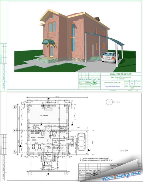Дом для проивания одной семьи. Использованы традиционные строительные материалы, используемые для строительства загородный домов: блоки из ячеистого бетона; утеплитель; облицовочный кирпич; монолитные железобетонные перекрытия; покрытие кровли – битумная черепица. |