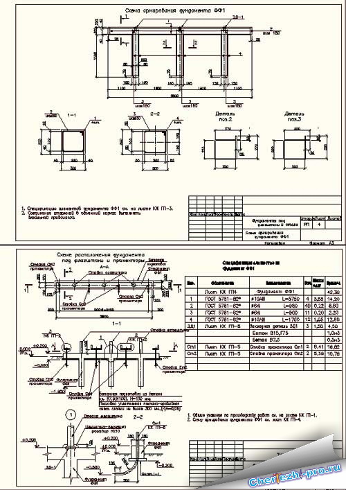 Рабочий проект фундамента под флагштоки и стеллу.Представлены чертежи плана, разрезы, узлы, детали.Схема армирования фундамента |