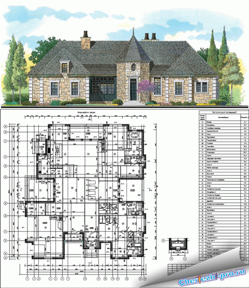 Состав проекта: -общие данные; -план первого этажа; -разрезы 1-1, 2-2; -фасады в осях 1-15, 15-1; -фасады в осях А-Н, Н-А; -план полов; -план кровли; -спецификация заполнения проемов |