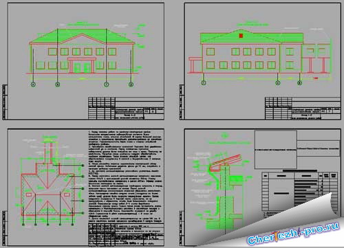 Файл содержит в себе планы кровли, фасады, разрезы кровли, план стропил, план утепления кровли, узлы, немного технологии. |