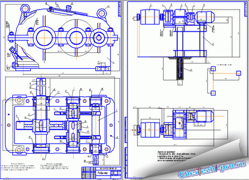 В пакете:пояснительная записка,спецификация,чертежи:общий вид,рама,редуктор,крышка редуктора,валы,колесо |
