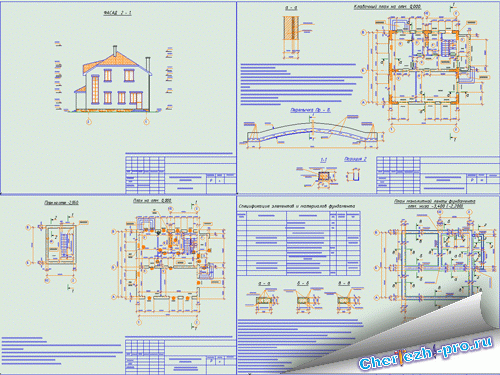 Пакет содержит следующие документы: -общие данные; -генплан; -план благоустройства; -сечения покрытий; -система отвода ливневки; -топоснова; -пояснительная записка; -общие данные-2 листа; -планы,разрезы-3 листа; -фасады- 4 листа; -кладочный план-2 листа; -фундаменты-2 листа; -плиты-2 листа; -вентканалы; -план кровли; -спецификации |