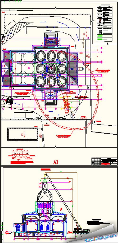 ППР на монтаж металлоконструкций ротонды, купола и барабана с помощью автокрана Liebherr 1150/1. Изготовление и монтаж производятся с помощью стенда-кондуктора |