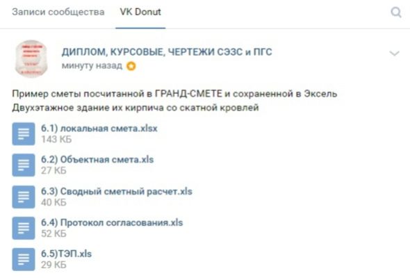 Пример сметы посчитанной в ГРАНД-СМЕТЕ и сохраненной в Эксель