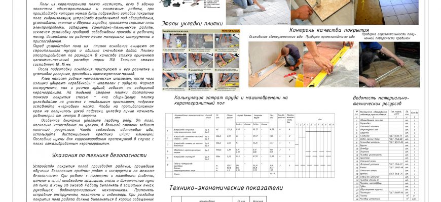 — техкарта на устройство пола из керамогранита