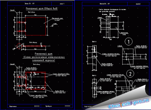 Рекламный щит (чертежи + расчеты) на осветительном столбе города полностью с приложением расчетов на ветровую нагрузку с расчетом всех креплений |
