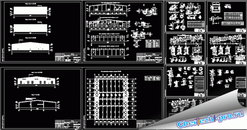 Чертежи склада из легких металлоконструкций и сэндвич панелей. Чертежи разработаны в стадии КМД |