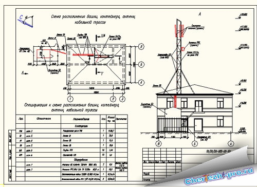 Конструкции: контейнера сотовой связи,разгрузочная рама на существующем здании для башни сотовой связи (проход через скатную кровлю), кабельных лотков, ограждения контейнера, молниезащиты контейнера. |
