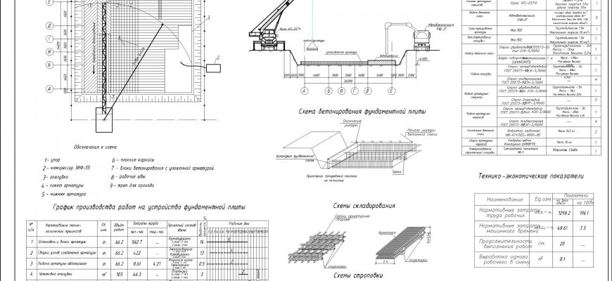 Техкарта на возведение фундаментной плиты, пример графической части в программе…