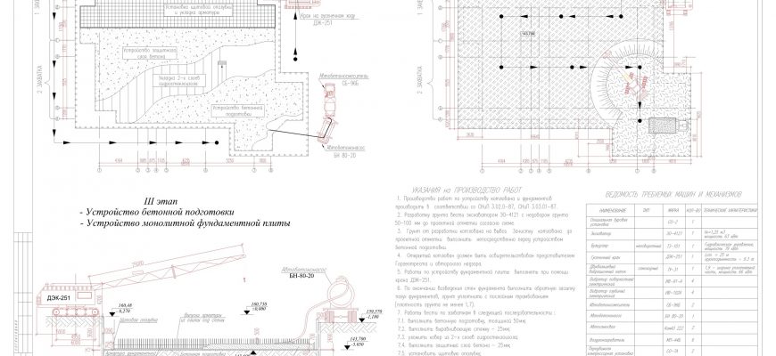 Техкарта на земляные работы и возведения монолитной плиты. Чертежи Автокад…
