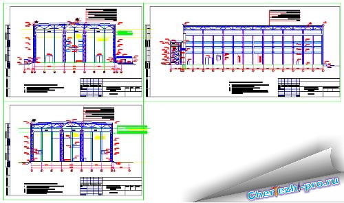 Трехпролетное промышленное здание на металлических колоннах, высотой под кран 18 м, фундаменты к колоннам. Стены выполнены из сендвич панелей. Мостовые краны грузоподъемностью по 10т. В данном архиве не указанна система вентиляции, так как она выполнялась отдельным разделом. |