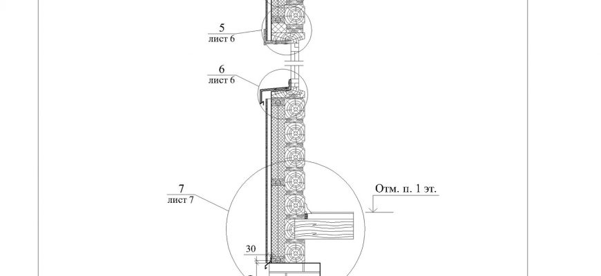Узлы деревянных стен из бруса в программе Автокад