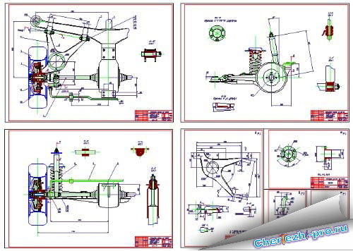 Автомобиль полной массой 2 тонны. Задняя подвеска на косых рычагах. 3 чертежа подвеска, 1 лист деталировка |